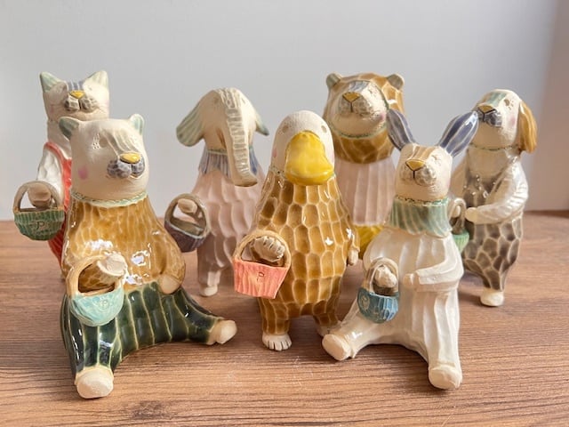 のほほんとした表情の動物を中心とした作品が多く、同じシリーズでも色合いや模様も多様です。