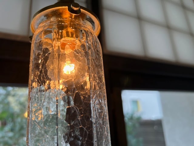 独特な表面のガラスの揺らぎがテーブルや壁に反射すると美しい光を生み出します。