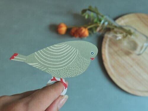 カードの穴に指を通すと、指の上に小鳥がちょこんと乗っかります。
