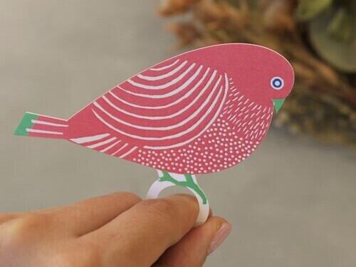 カードの穴に指を通すと、指の上に小鳥がちょこんと乗っかります。