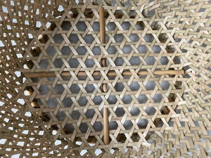 六つ目編みに更に交互にひごを通した編みで、しっかりした作りです。