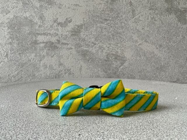 猫とくらす310bld. | USリボン首輪 bias stripe blue&green