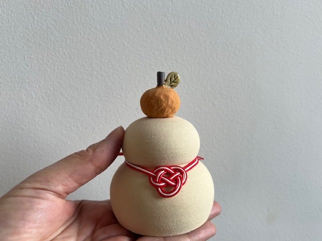 ろくろで成形した鏡餅。ザラリとした表面が素朴な印象です。