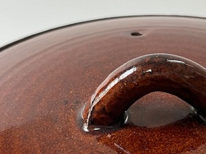 重厚感のある艶が美しい鍋。生産過程で様々な工夫を重ねることにより、土鍋ではなかなかない光沢を放つ豊かな質感を表現しました。